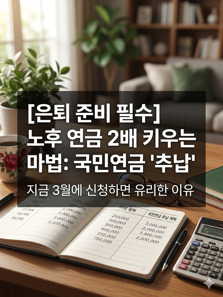 은퇴가 가시권에 들어오는 5060 세대에게 가장 큰 고민은 단연 '매달 받는 연금 액수'입니다. 물가는 치솟는데 국민연금 수령액이 생각보다 적어 실망하신 적 없으신가요? 오늘은 과거에 내지 못했던 보험료를 나중에 채워 넣어 연금액을 드라마틱하게 높일 수 있는 '국민연금 추후납부(추납)' 제도를 심층 분석해 보겠습니다.