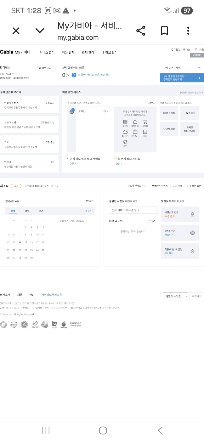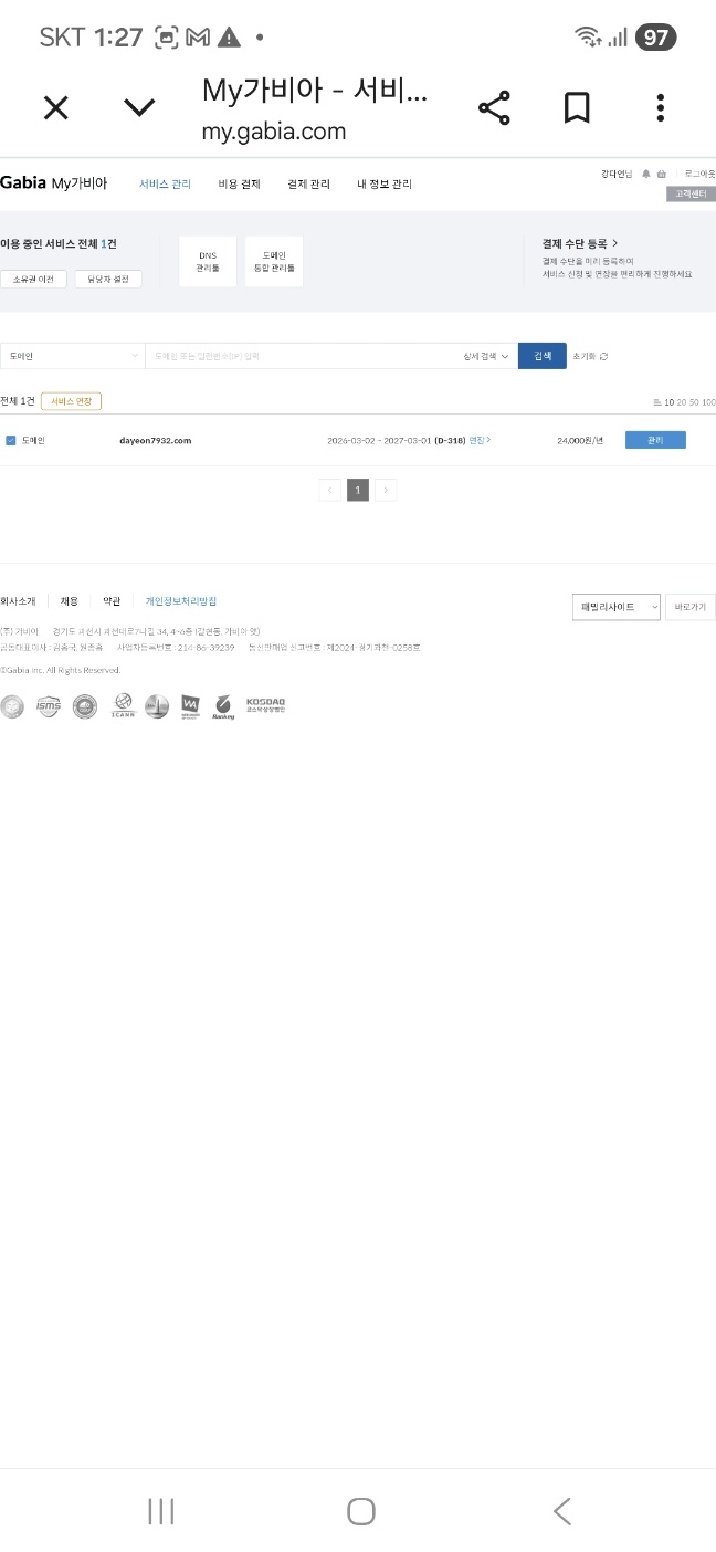 저는 개인 도메인을 구매해 티스토리와 연결하는 과정을 거쳤습니다. 가비아에서 도메인을 사고 DNS 설정을 하는 과정이 60대인 저에게는 꽤나 큰 도전이었습니다.