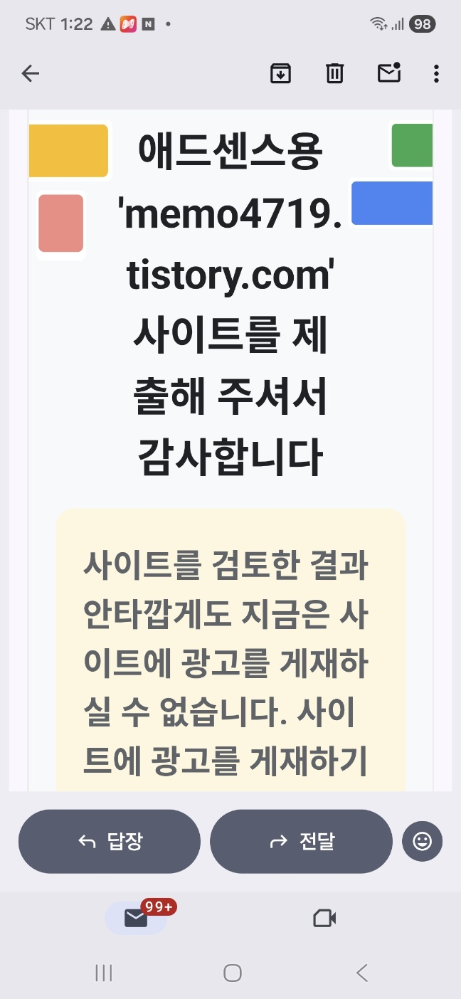 - 반성: 도메인 연결 직후 사이트 맵(Sitemap) 등록과 색인 생성이 완전히 자리 잡기 전에 승인 신청을 서둘렀던 것 같습니다. 구글 로봇이 제 블로그의 구석구석을 다 훑어볼 수 있도록 충분한 시간을 두고 기술적인 최적화를 마쳐야 함을 깨달았습니다.